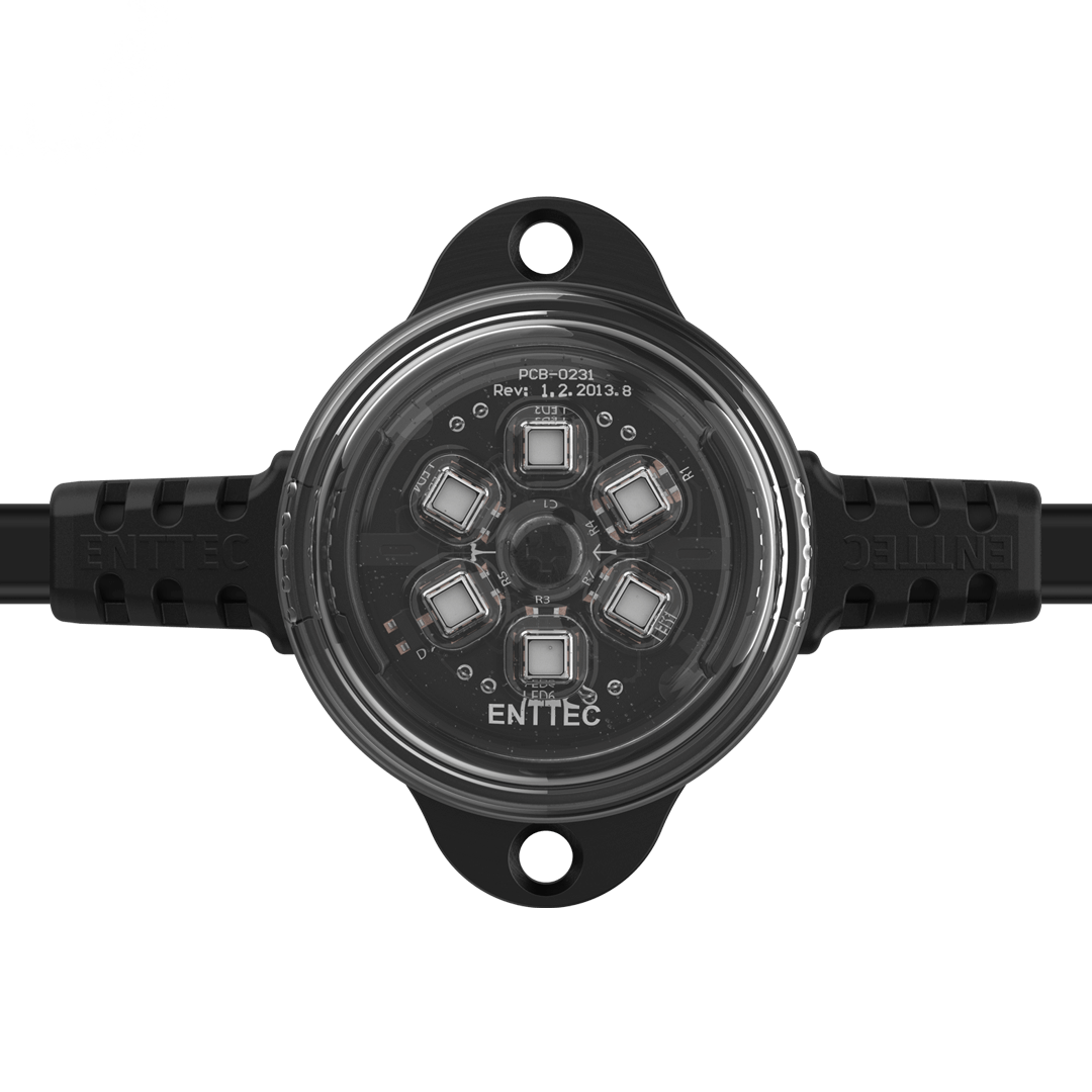 Flexible strings of ultra-bright, high-resolution 41.5mm RGB LED dots with robust, aluminium cases for all-weather use