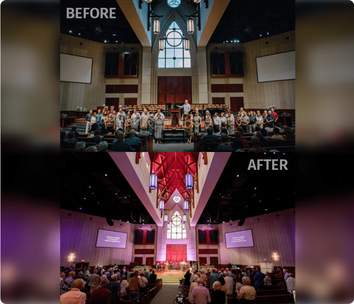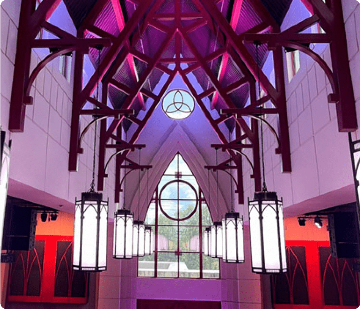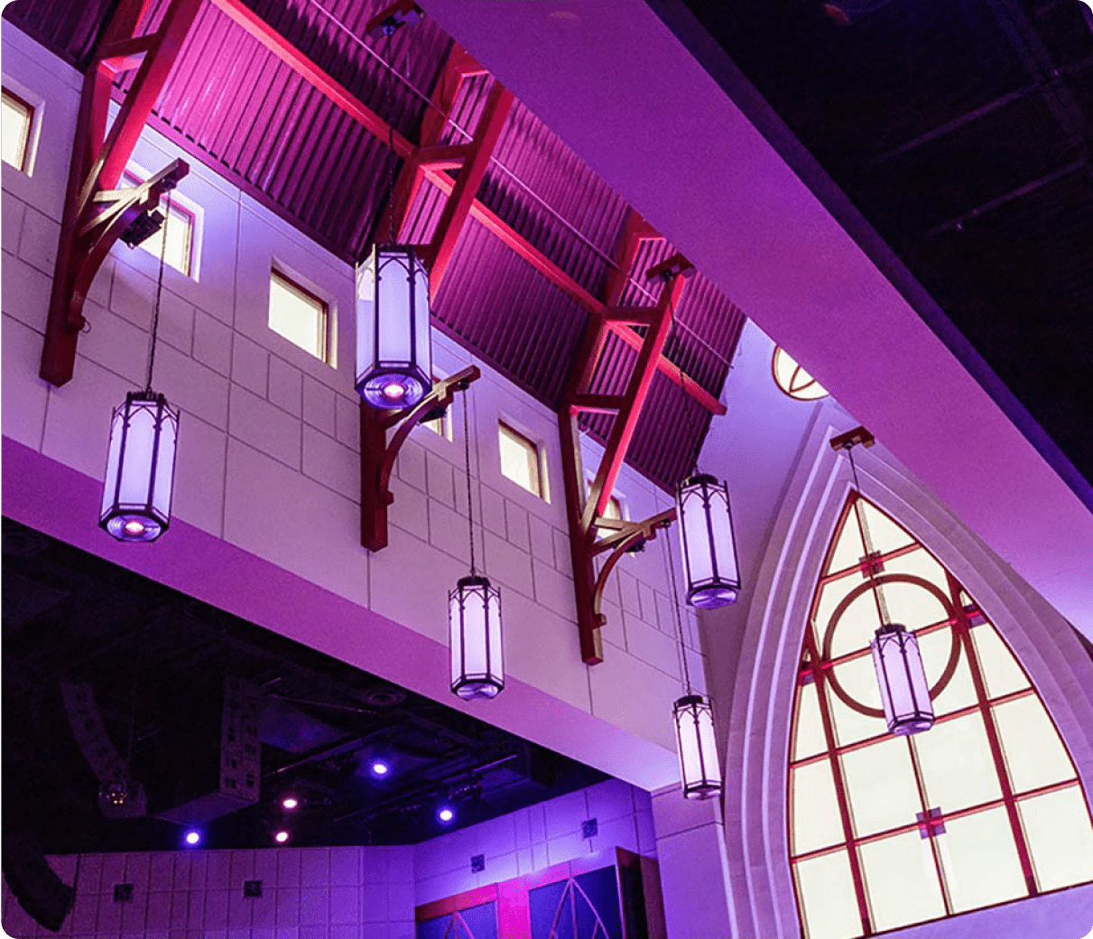 This spectacular transformation of Seven Rivers Church in Florida, USA, uses ENTTEC 24V constant voltage LED strip lights. Creative accents and wall washes completely changed the atmosphere of the space, lifting it to truly ethereal heights.