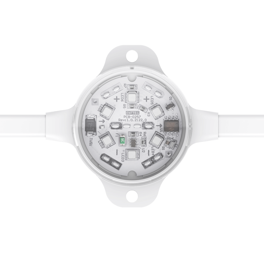 ENTTEC’s Smart PXL 40 dots feature robust, weatherproof IP67 PVC cases and connectors, offered in both black and white finishes to suit a variety of design needs. These versatile, easy-to-install RGB dots create striking lighting effects and can be customized for any project. Designed by professionals, they take any project to the next level to suit architectural, commercial and entertainment spaces. For projects requiring metal fixtures, we offer an aluminium variant (METAL Smart PXL 40 Dot) made from marine-grade aluminium, machined, and anodised at our factory.