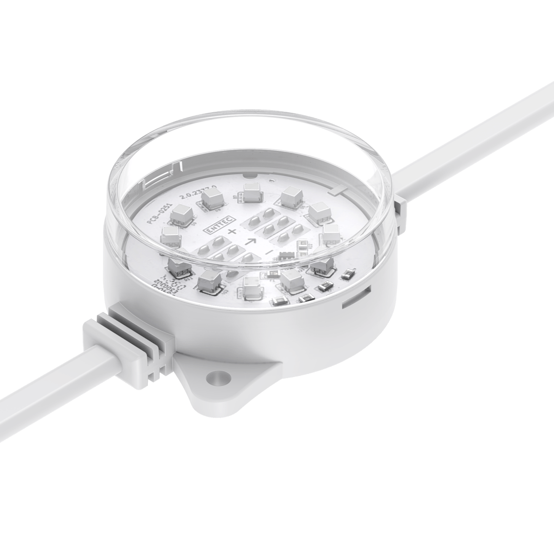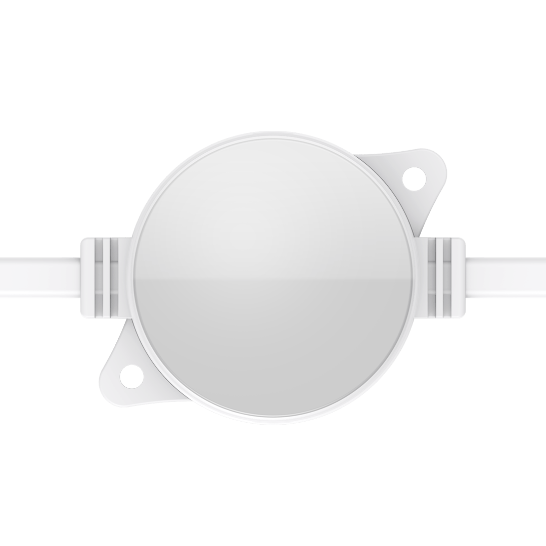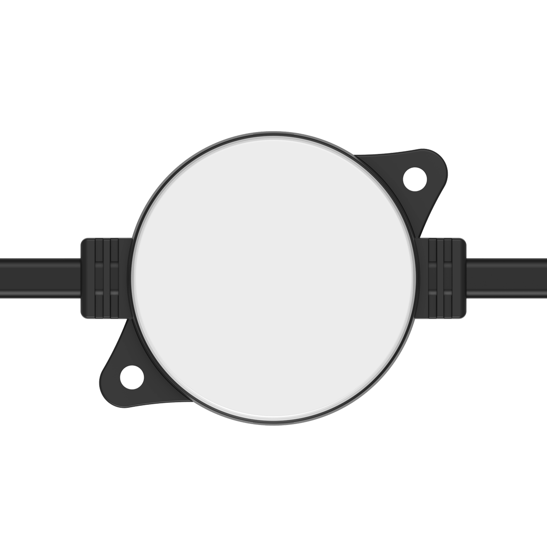 Flexible strings of ultra-bright, high-resolution 55.5mm RGB or RGBW LED dots — available in black or white finishes — with robust, injection-moulded cases for all-weather use.