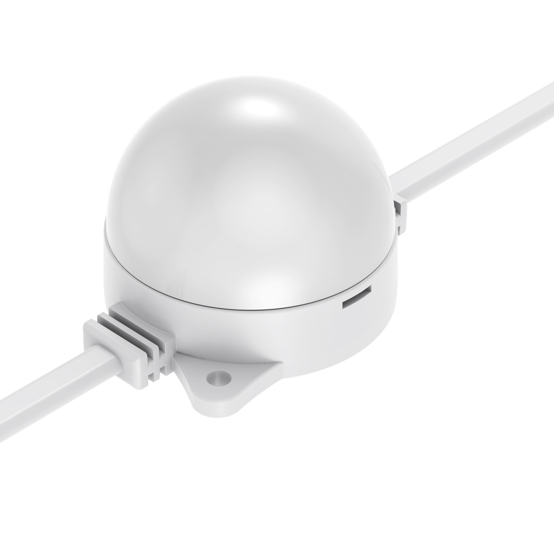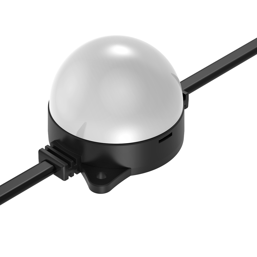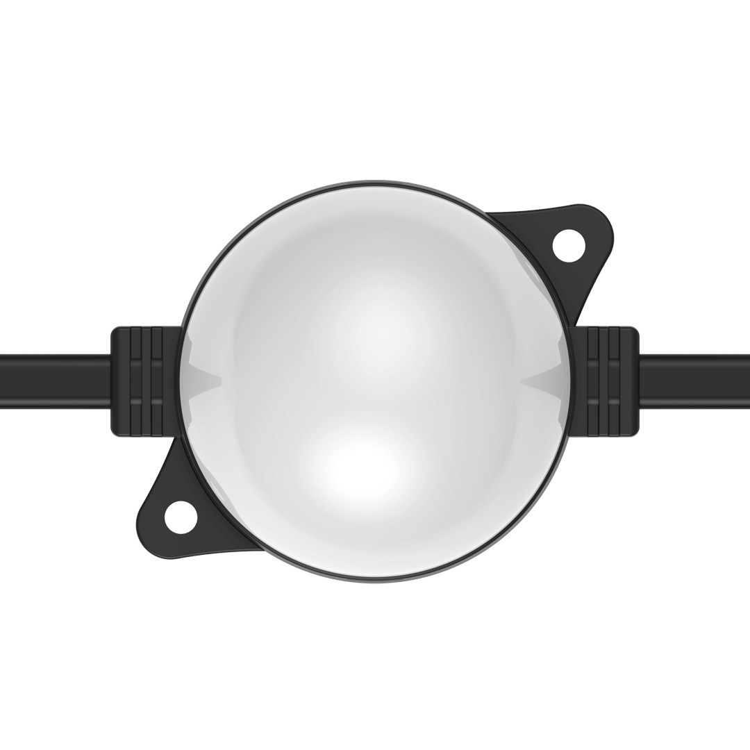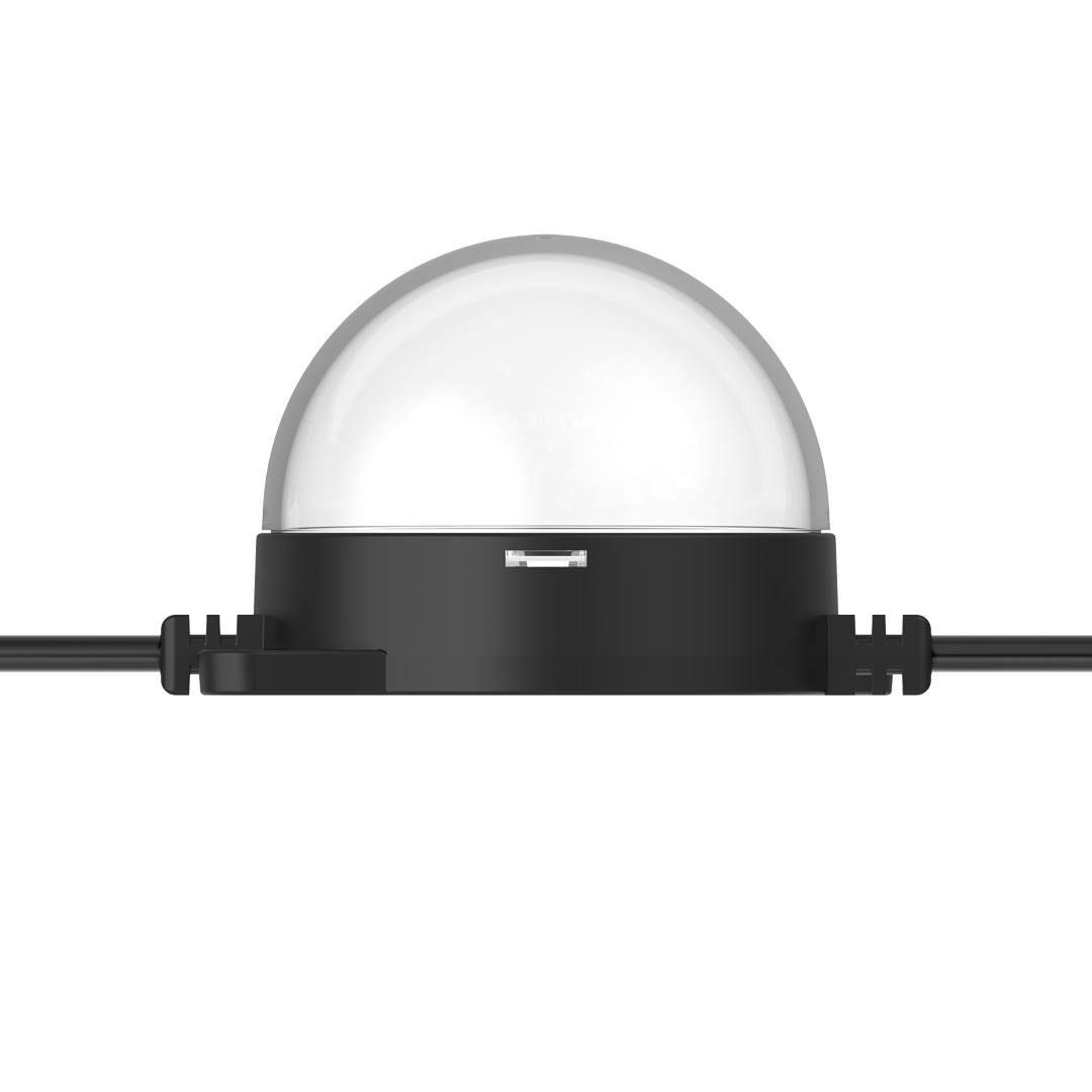 Flexible strings of ultra-bright, high-resolution 55.5mm RGB or RGBW LED dots — available in black or white finishes — with robust, injection-moulded cases for all-weather use.